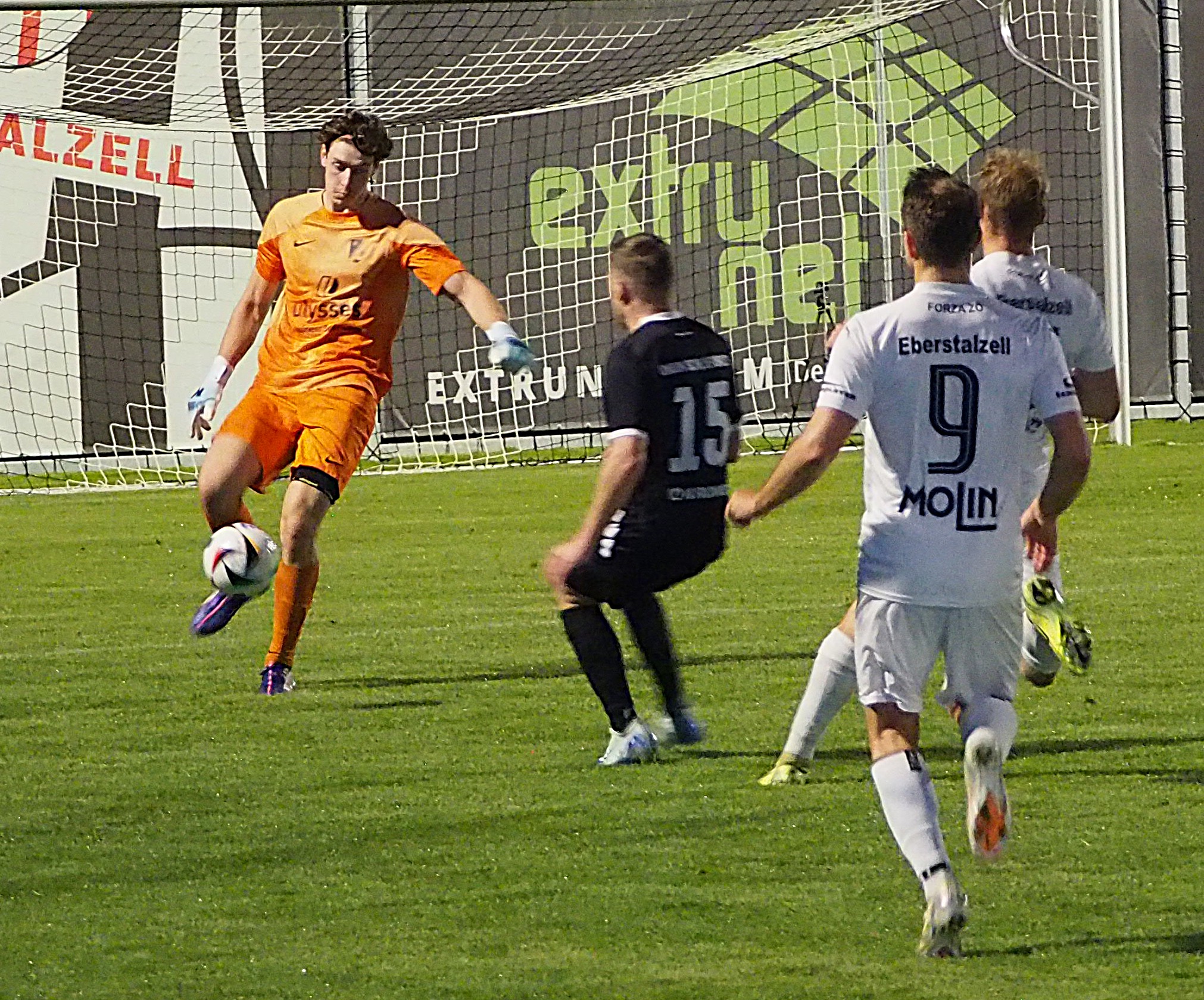 Die Union Eberstalzell empfing die Union Schlierbach zur Stadioneröffnung am späten Freitagabend bei perfekten Rahmenbedingen: Traumrasen, Sonnenschein, 800 Zuseher. Die Heimelf wollte gleich zu Beginn zeigen, wer Herr in der neuen Nexus– Arena ist und übernahm früh das Kommando. Brenzlig wurde es im Strafraum der Gäste aber vorerst nicht, im Gegenteil: die Oberndorfinger- Elf kämpften sich in die Partie und hatte durch Winkler und Weiss zwei gute Möglichkeiten auf die Führung. Für die Eberstalzeller wurde Mitte des ersten Durchgangs Michetschläger erstmals bei Prenninger vorstellig, doch auch sein Versuch war zu zentral. Da beide Teams defensiv anfällig agierten, kam es im weiteren Verlauf zu vielen Halbchancen, die aber auf beiden Seiten nicht konsequent ausgespielt wurden.